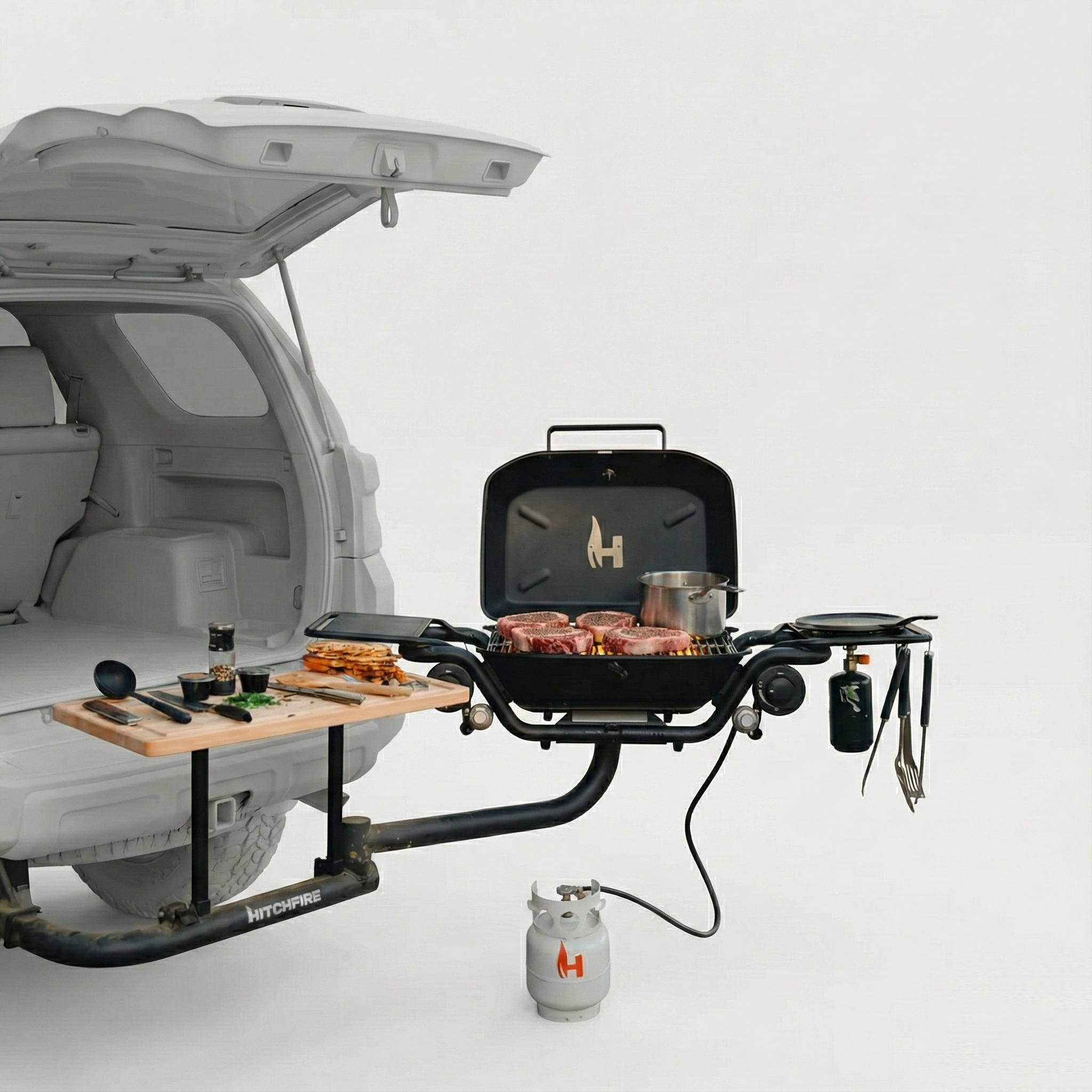 From side tables and griddles to utensil kits, covers, swing arms, and storage upgrades — HitchFire has an add-on for every mission. More ways to cook. More ways to camp. More ways to make your rig yours.
